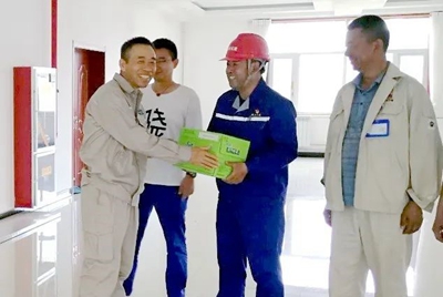 由公司EPC總承包的榆神能化50萬噸/年煤基乙醇項目,自開工以來,項目建設者堅守一線,組織施工建設、排查安全隱患、提供技術支持、嚴控質量關。目前,正值項目安裝施工大干時期,項目全員時刻緊盯現場,即使酷熱難耐,也要堅守崗位。考慮到項目現場艱苦環境,近日,公司工會在項目現場開展了"送清涼"活動。