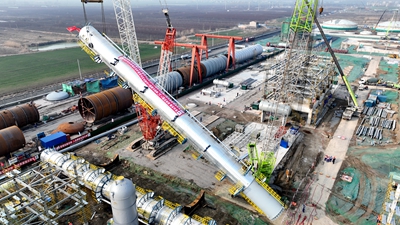 全球最大規模安徽碳鑫60萬噸/年煤基乙醇項目超百噸大塔順利吊裝