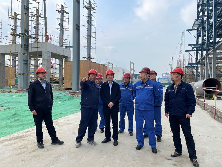 近日,北京石油化工工程有限公司(簡稱:北油工程)黨委書記、董事長許緘濤到公司EPC總承包的安徽碳鑫科技有限公司(簡稱:碳鑫科技)甲醇綜合利用項目乙醇聯合裝置調研指導工作,公司副總經理、總工程師曹堅,項目部主要領導陪同調研。