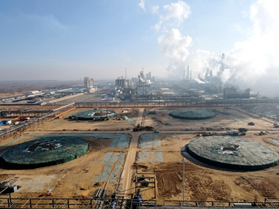 目前,公輔工程6個主項已中交并投用,4臺罐基礎全部澆筑完成并開始交安;設備就位50臺/套,占總量的27%;火炬區(qū)域交接完成,項目總體進度按計劃穩(wěn)步推進。