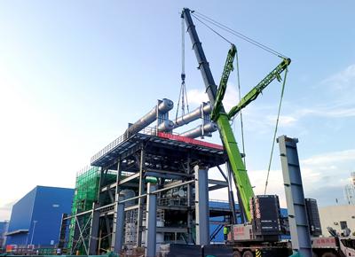 高/低溫回?zé)崞魇琼椖恐邪惭b高度最高、重量最大的設(shè)備,為確保吊裝順利完成,項目組與業(yè)主及各參建方多次召開吊裝專題會,細化吊裝作業(yè)施工方案、應(yīng)急預(yù)案和安全技術(shù)措施,并組織相關(guān)專家對吊裝方案進行會審。項目組嚴格執(zhí)行吊裝流程,安全技術(shù)交底,整個吊裝過程井然有序。