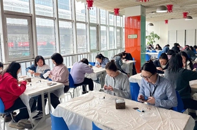 手工體驗區則呈現出另一番溫馨愜意的景象。女職工們圍坐在一起,興致盎然地投入創作,從材料挑選、造型設計到細節雕琢,每一個步驟都飽含巧思、一絲不茍。指尖翻飛間,一件件獨具匠心、精致美觀的手工作品悄然成型,大家在動手實踐中舒緩了工作壓力,也在互動交流中進一步增進了彼此的情誼,傳遞了巾幗溫情。