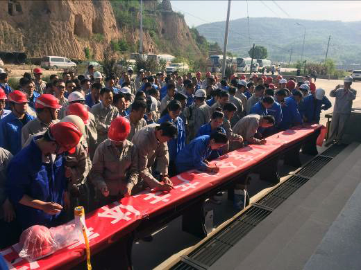 項目現場經理在儀式上強調,活動要積極圍繞“全面落實企業安全生產主體責任”為主題開展,對目前的安全管理薄弱環節進行重點排查,創造一個安全、有序、和諧的生產、生活環境。同時,結合項目實際提出四點要求,一是扎實開展安全月活動,確;顒尤〉脤崒嵲谠诘男Ч;二是以安全月活動為契機,形成良好的安全宣傳管理氛圍;三是安全崗位責任層層落實到位,形成人人要安全,人人管安全的理念;四是堅守安全紅線,堅決杜絕一切逾越安全生產紅線的行為。